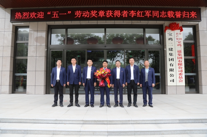 鑼鼓喧天報喜訊,鮮花掌聲迎勞模。集團公司高層領導、總部全體員工及三十九項目部員工在總部辦公大樓前迎接寶雞市五一勞動獎章獲得者李紅軍同志載譽歸來。