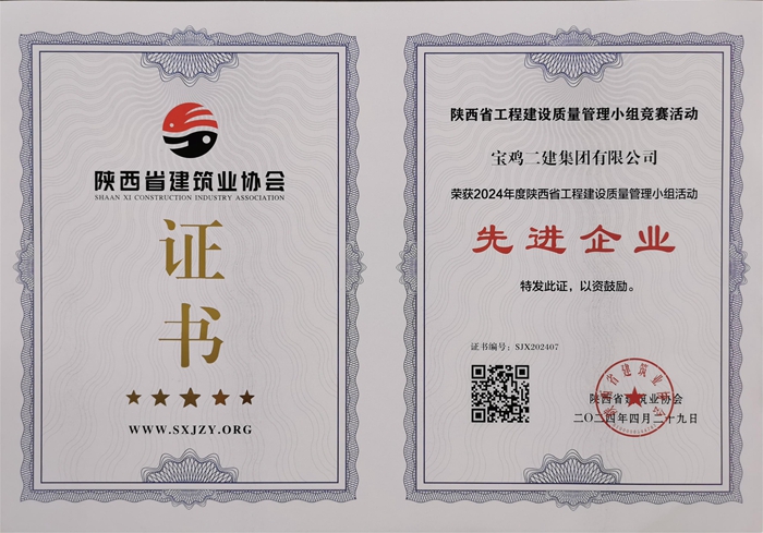 2024年度陜西省工程建設(shè)質(zhì)量管理小組活動先進(jìn)企業(yè)